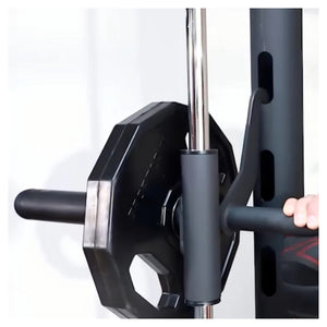 Crafted for serious lifters, the guided barbell glides on ultra-smooth linear bearings along reinforced guide rods, giving you consistent and safe movement throughout every rep. Whether you're focused on squats, bench press, shoulder work, or lower body toning, this system supports it all with precision and power. The adjustable safety stops provide maximum peace of mind when lifting solo, while the included pull-up bar expands your upper body training without requiring extra wall-mounted equipment.