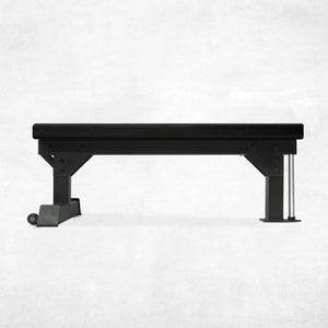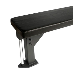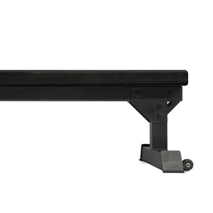 Flat weight bench with steel frame, 50 mm padded seat, and 300 kg load capacity. Built for compact home gyms, includes rear wheels for easy storage. Ideal for dumbbell training, chest workouts, and full-body strength sessions.