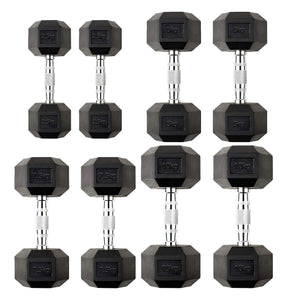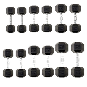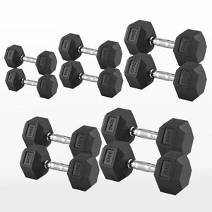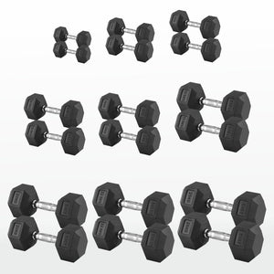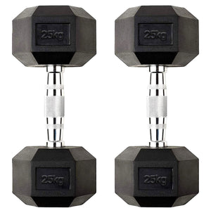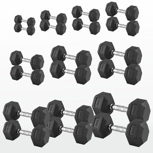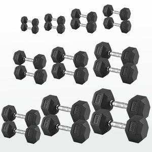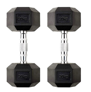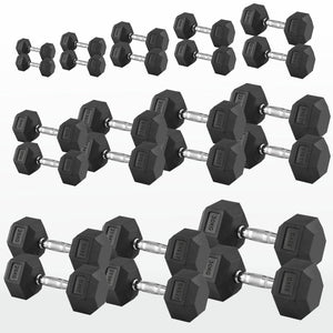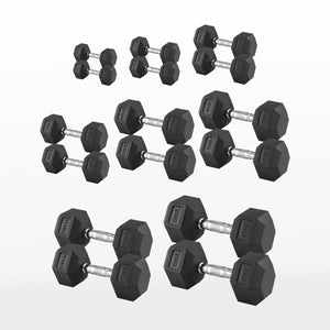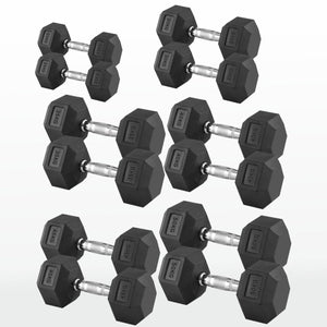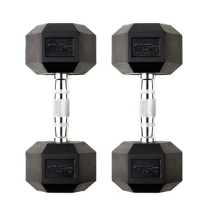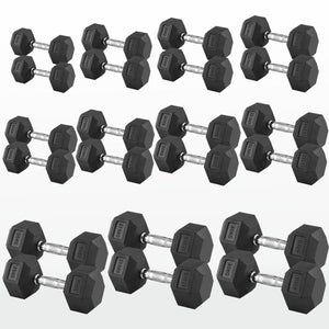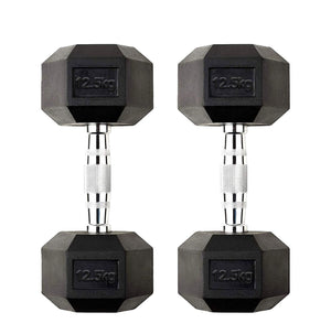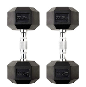 Hex Dumbbell Pairs – 2.5kg to 60kg Range Available – Rubber Coated Anti-Roll Weights with Chrome Handles – Full Dumbbell Range for Home Gym Strength Training UK